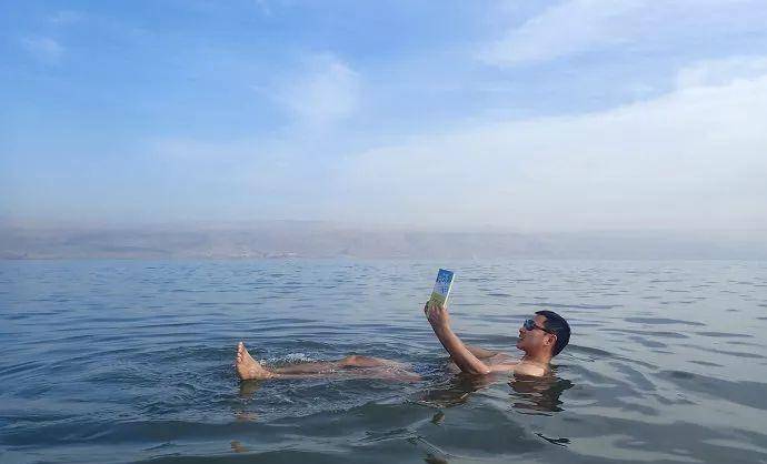 飘浮在死海之上,安详地看书;